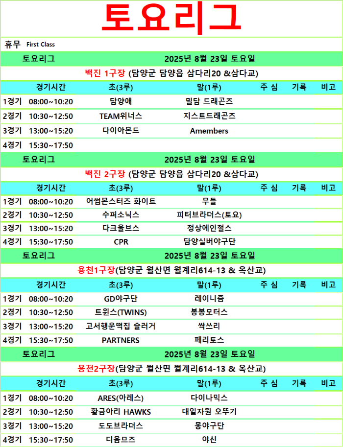 8월 23.24일 경기일정입니다.