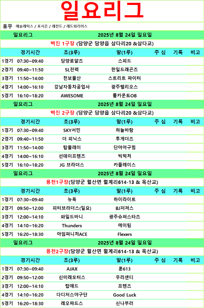 8월 30.31일 경기일정입니다.