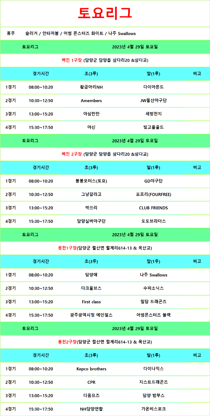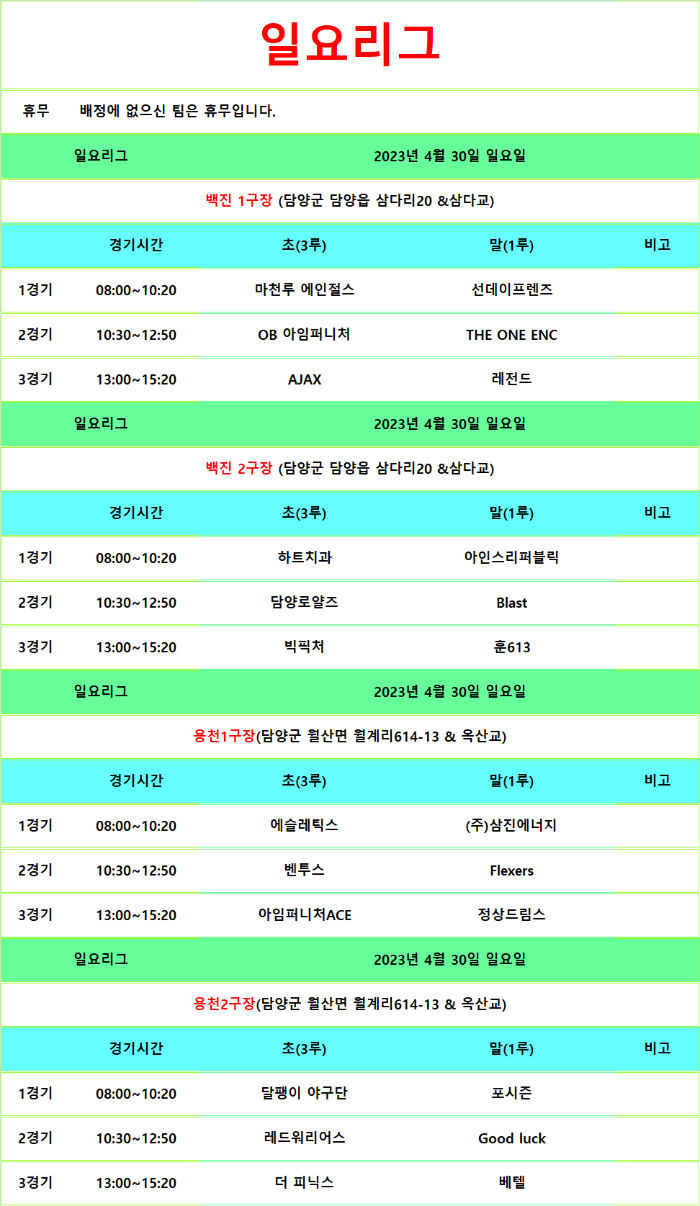 일요리그 ROUND 1 결과 및 ROUND 2 해당조