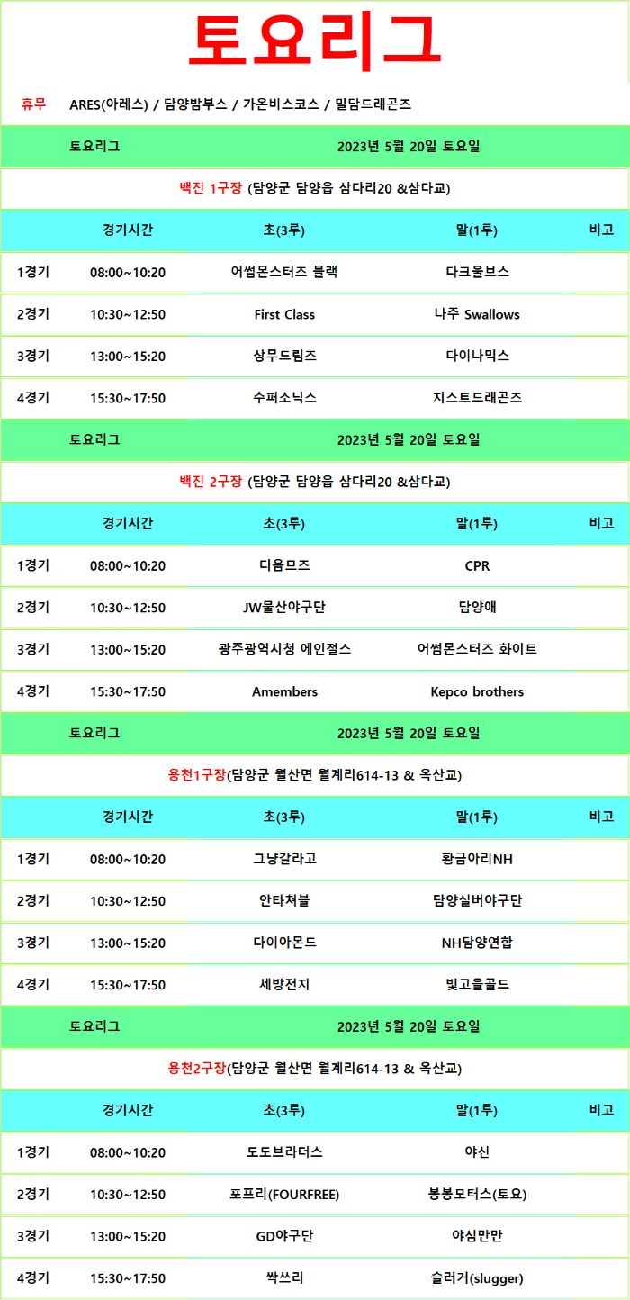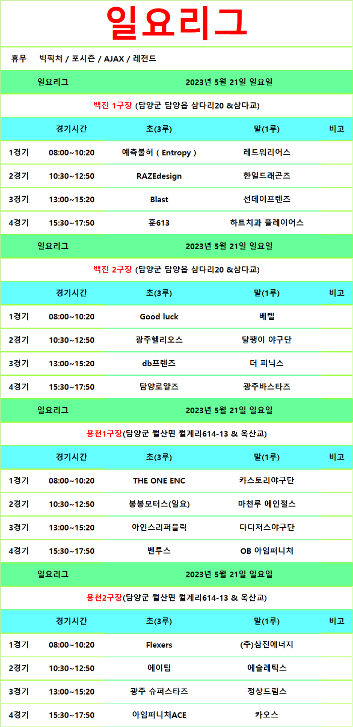 5월20~21일 경기일정(12주)