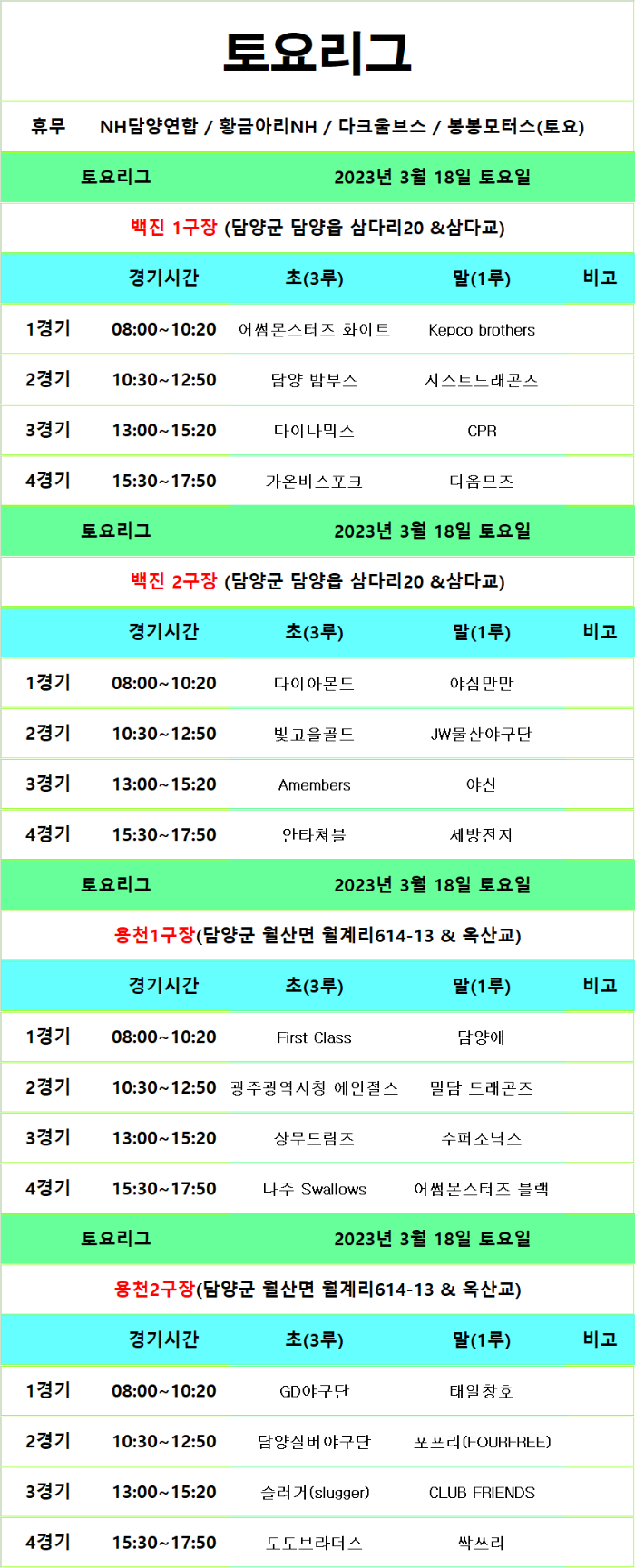 3월18일 ~19일 경기일정 (4주차)