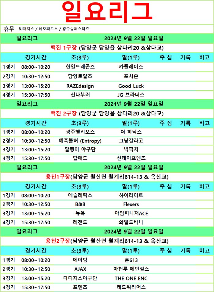 9월 21.22일 경기일정입니다.