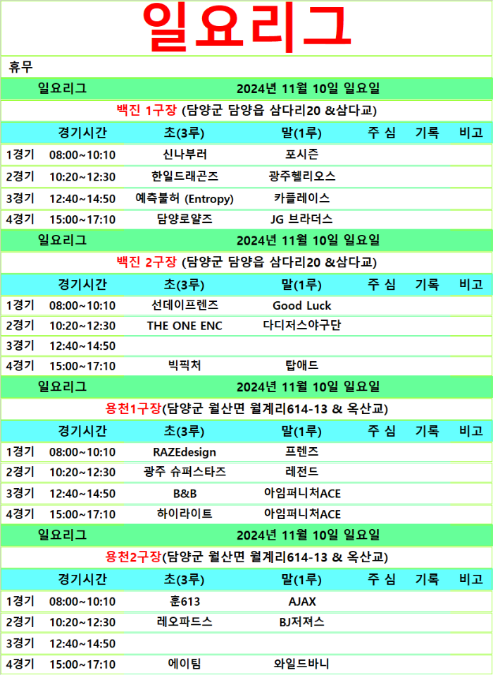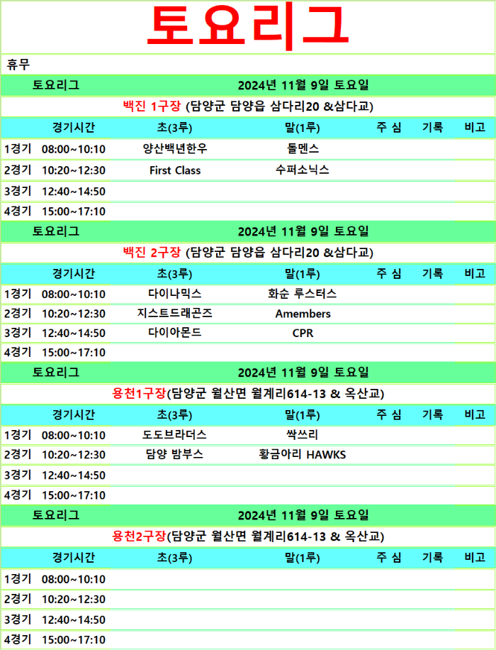 11월 9.10일 경기일정입니다.